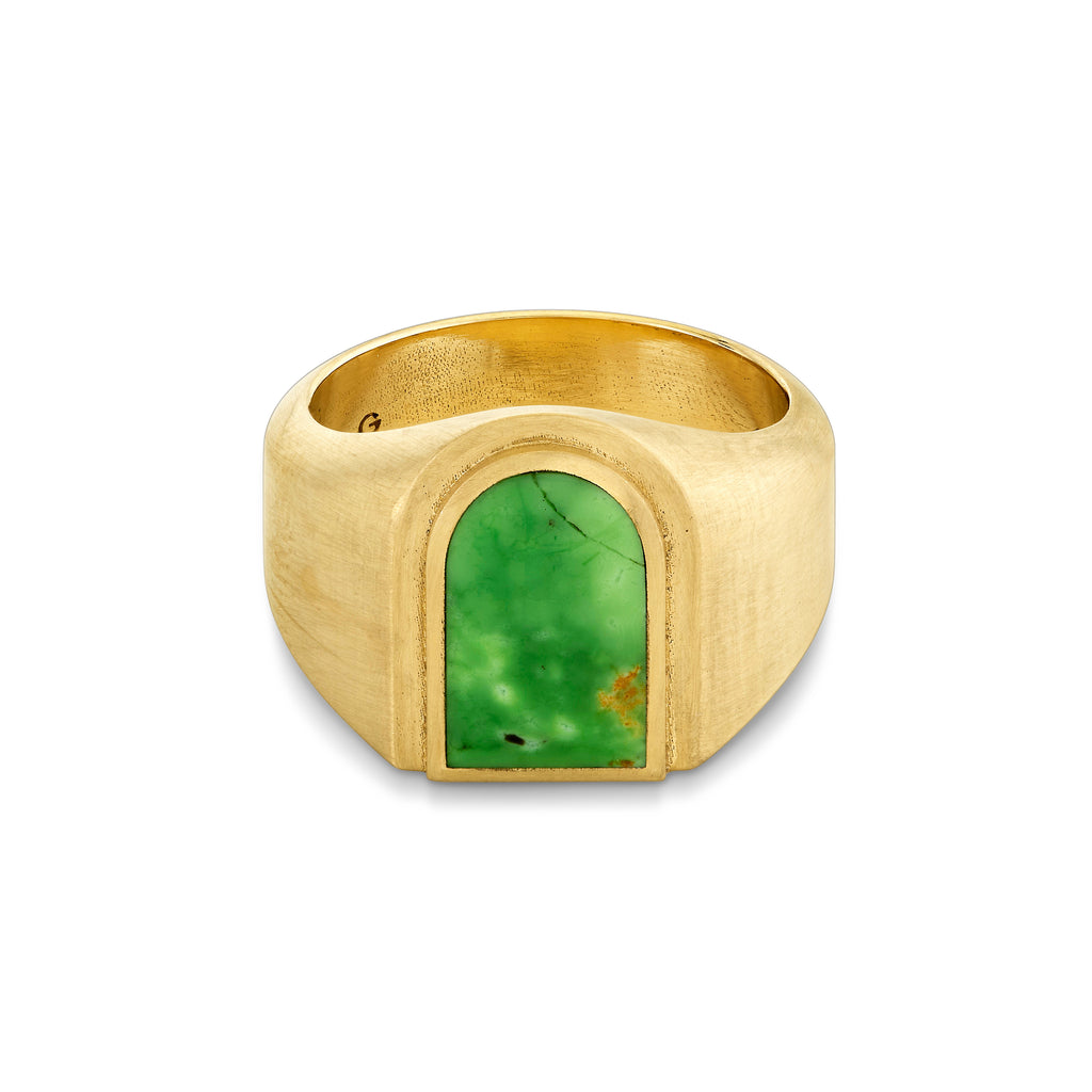 Portal Inlay Signet Ring, 15mm, 14K, Carico Lake Turquoise